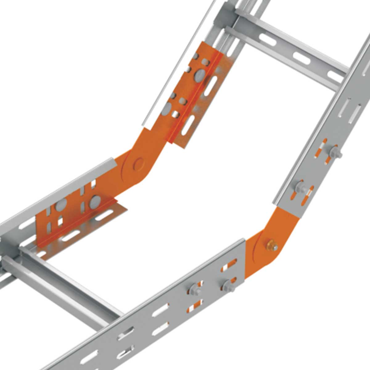 For the connection of the hinged joint to the tray there are used the bolts NSM 6X10. The joint is delivered in 1 piece per packing, 2 pcs are needed to make a bend of the line.