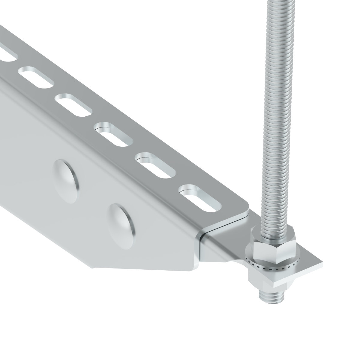 DT OKO holder is used with DT bracket. For standardized cable trays and ladders. DT bracket with DT OKO safety holder must be fixed a wall or a celling by threaded rod.