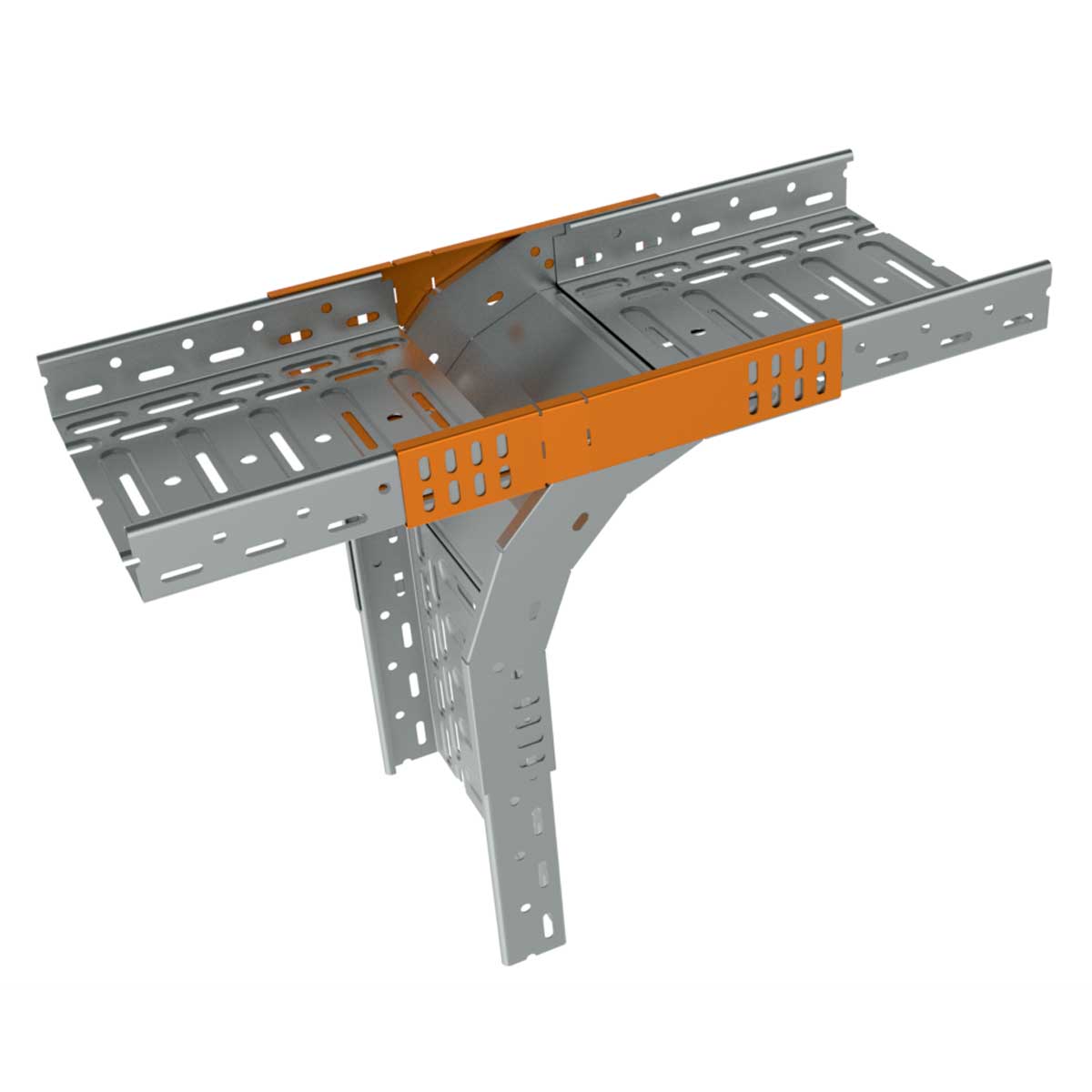 This part enables a vertical route to be switched to horizontal. Particularly suitable for the main cable route, e.g. to machines or other equipment. Used together with a downward arc. Protected by industrial model.